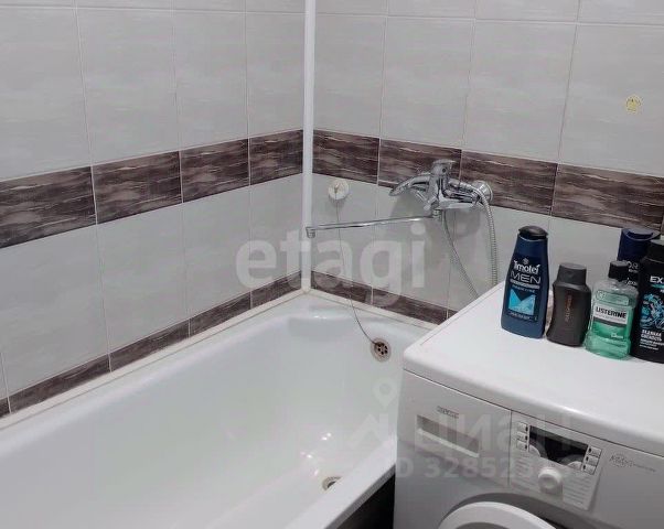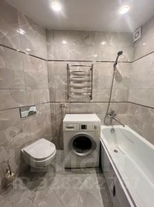 Санузел совмещенный, кафель; ванна, трубы поменяны, установлены счетчики на воду. Умещается стиральная машина.