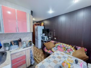 Просторная кухня: 9,2 кв. м., обои, ПВХ окно, есть место под холодильник, вытяжка, у мойки выложен кафель, газовая плита.
