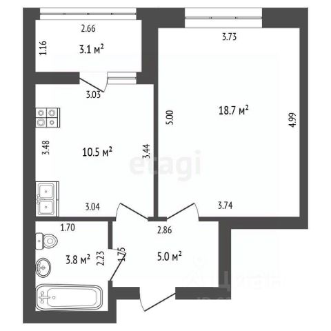 Общая площадь 38,9кв.м ( без учета балкона), комната 20.7кв.м, кухня - 7,07 кв.м.