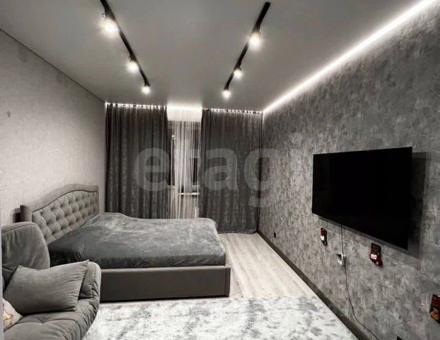 В основной комнате установлена парящая лента, светодиодные шины на потолке, кондиционер, имеется большой балкон площадью 2,5 кВ метра. Эта квартира — самая большая в доме ЖК "Ветеран" по нашему адресу, чистая, просторная, хорошая шумоизоляция, соседей по бокам не слышно, а сверху большой технический этаж. В квартире тепло зимой и не жарко летом.