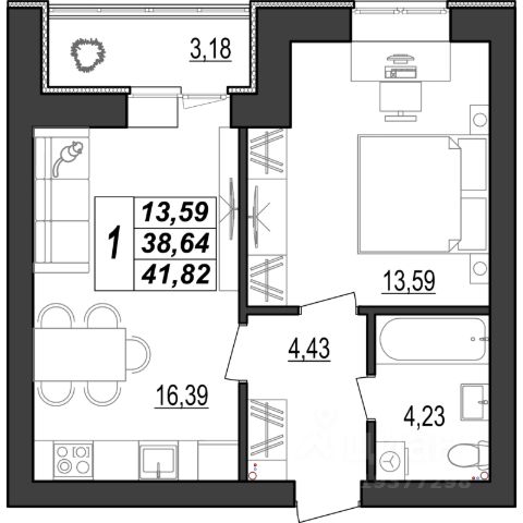 Продаётся 1-комнатная квартира в строящемся доме (Дом 1), срок сдачи: IV-кв. 2026, общей площадью 41.82 кв.м., на 3 этаже. Новый жилой комплекс от группы компаний "БИНА" расположен по адресу: г. Саранск, 1-я Набережная, 56