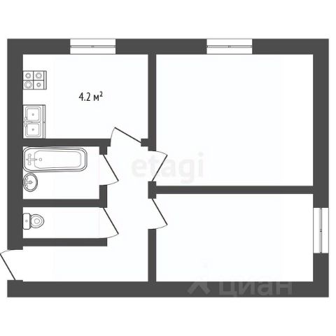 Планировка: веранда с выходом на участок, кухня 8,6 кв.м. с погребом, раздельный санузел, жилая комната 11,6 кв.м., жилая комната 16,7 кв.м., коридор.
