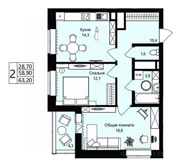 • ✅ Минимальная площадь: 41,9 м²