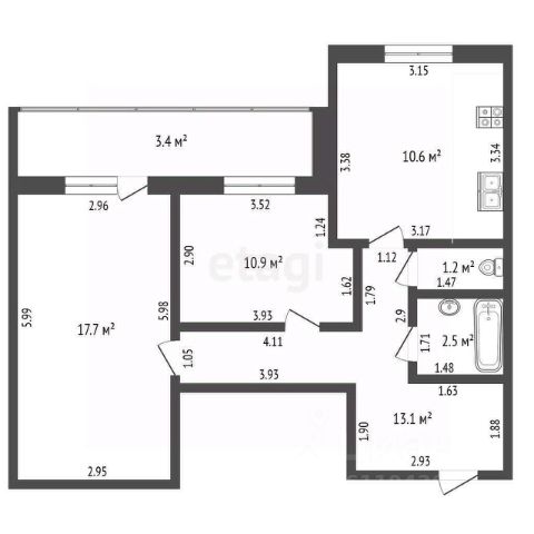 Продается 2-х комнатная квартира, расположенная на 8-ом этаже 9-ти этажного кирпичного дома 2012 года постройки. Квартира не угловая. Общая площадь без учета лоджий составляет 55,8 кв.м. Высота потолков - 2,65 м. Две лоджии с выходом из кухни и комнаты. Окна на обе стороны дома. Санузел раздельный. Металлическая входная дверь. Окна пластиковые. Потолки натяжные. Напольное покрытие: в кухне - линолеум, в прихожей и комнатах - ламинат. Лоджии застеклены (пластиковая рама) и обшиты деревянной вагонкой. Санузел отделан пластиковыми панелями. Дом расположен не у дороги, вдали от шума и пыли. В шаговой доступности: остановки общественного транспорта, сетевые продуктовые магазины, детский сад, ТРЦ Сити парк. Код пользователя: 73146 Номер в базе: 2650924 Этажи Чёрная пятница