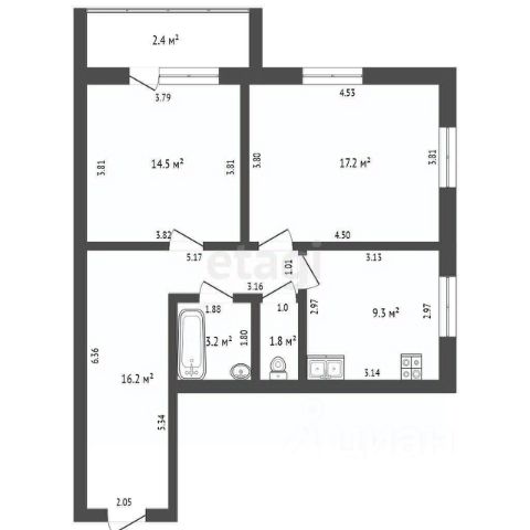 Две просторные, разнесенные комнаты 17,9 и 16,4 кв/м, что является плюсом. В одной из спален лоджия 4,4 кв/м.