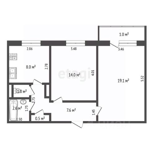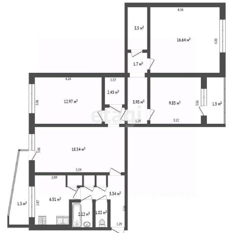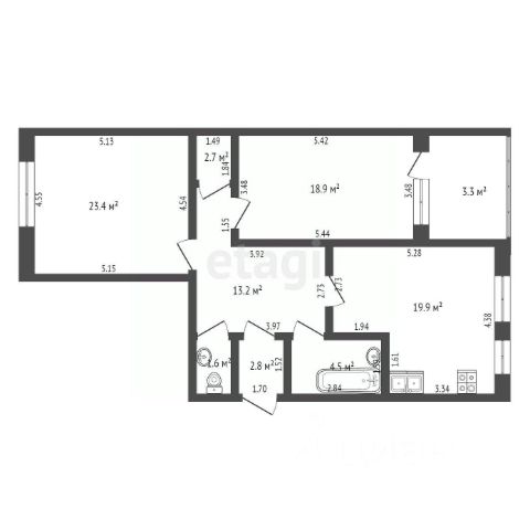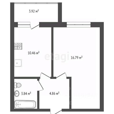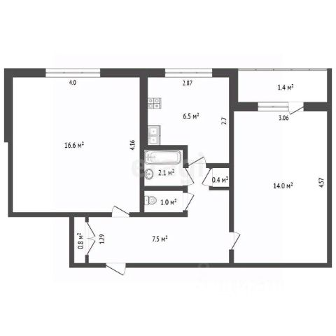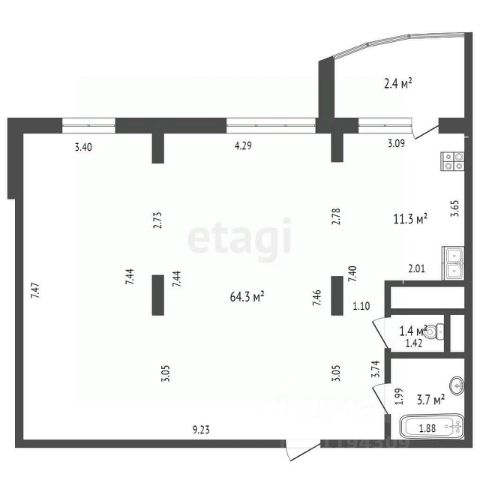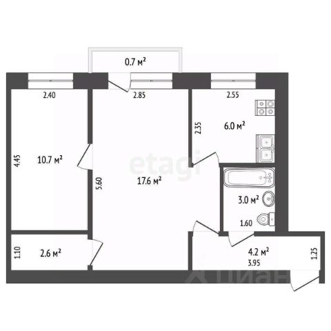 Общая площадь 38,9кв.м ( без учета балкона), комната 20.7кв.м, кухня - 7,07 кв.м.