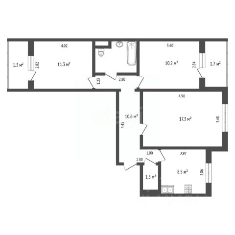 Санузел раздельный, что важно для большой семьи, обделан керамической плиткой. Удобный, большой коридор. Поменяны все тpубы cиcтемы водocнабжeния, канализации и отопления. На всё установлены счётчики. Тамбур на 2 квартиры.