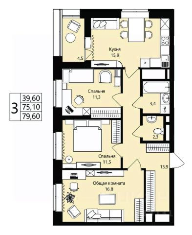 • ✅ Минимальная площадь: 63,2 м²