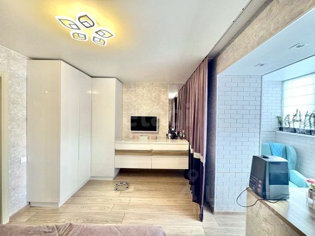 В квартире выполнен ремонт из материалов высокого качества. На полу ламинат Tarkett 33 класса, стены оклеены итальянскими обоями. Окна в квартире пластиковые, немецкий профиль КВЕ. Межкомнатные двери — натуральный шпон. Санузел раздельный, отделка — плитка, производство Италия, трубы — полипропилен (Чехия), сантехника — Чехия.