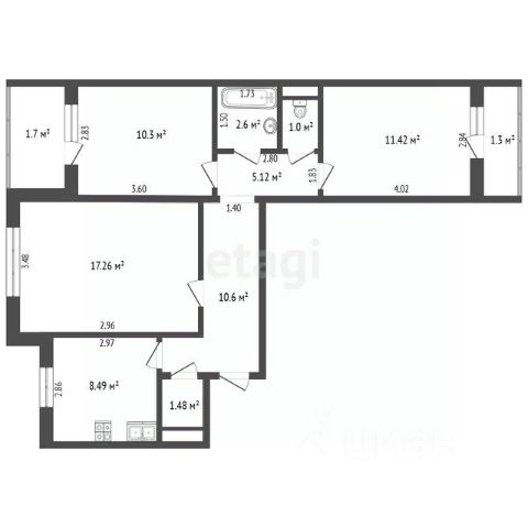 • ✅ Объект наибольшей площади: 95,9 м²