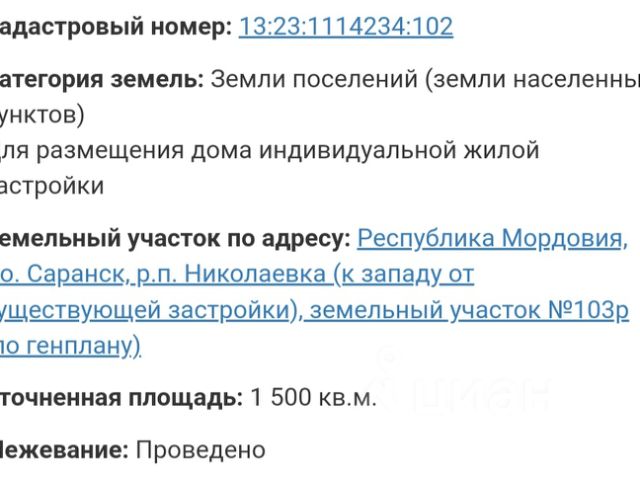 Продается ровный участок 15 соток правильной формы в р. п. Николаевка на улице Гризодубовой. Электричество и газ идет по границе участка. Асфальт идет по улице Темниковская, потом поворот на ул.Гризодубова . где дорога отсыпана щебнем. И через 4 участка находится продаваемый участок. До центра города Саранска 15 минут на машине. До пляжа пруда Зеленая Роща 3 минуты на машине. Участок имеет категорию ИЖС — индивидуальное жилищное строительство. Можно оформить подряд на строительство дома под семейную ипотеку 6 процентов. Компания предоставляет проверенных застройщиков. Консультация специалиста по ипотеке — бесплатно. К концу года Вы можете уже быть хозяином своего дома! Цена указана только за земельный участок, который можно приобрести без оформления строительства. Покупателю предоставляется юридическая и финансовая гарантия сделки. Остались вопросы — звоните! Код пользователя: 187694 Номер в базе: 10950815