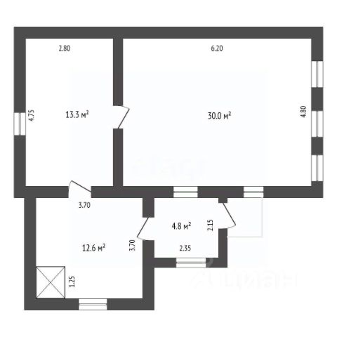 Просторная кухня, две светлых комнаты, мастерская, кладовая, санузел, есть холодный коридор, в дом два входа.