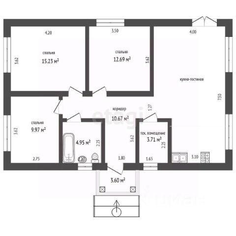 3-комн.кв. · 71 м² · 2/3 этаж