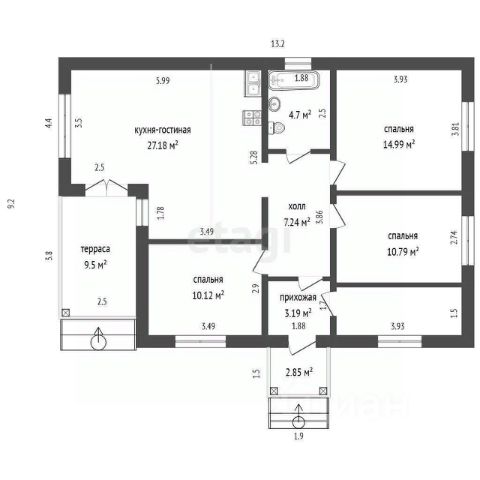 Внутри вы найдете просторную кухню (17,4 кв. м.), уютный зал (24,71 кв. м.) и две светлые спальни (по 20,42 кв. м. и 19,32 кв. м.), а также прихожую (12,22 кв. м.) и другие вспомогательные помещения. Все коммуникации уже подключены: газ, вода из колодца, газовый котел, окна ПВХ и две отдельные канализации. Санузел совмещенный, с установленной ванной для вашего удобства. Вся мебель остается новым владельцам, что позволит вам сразу же насладиться жизнью в новом доме!
