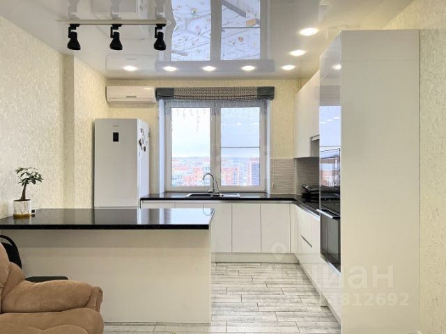 В квартире сделан современный качественный ремонт, пластиковые окна, натяжные потолки, на полу: на кухне 20 кв. м в рабочей зоне кафель + теплые полы, в зоне отдыха ламинат, во всех комнатах также везде положен ламинат, в прихожей кафель + система теплых полов.