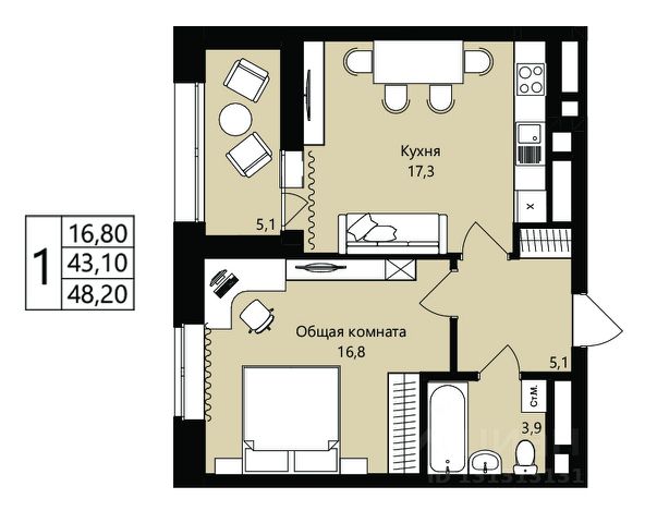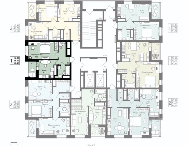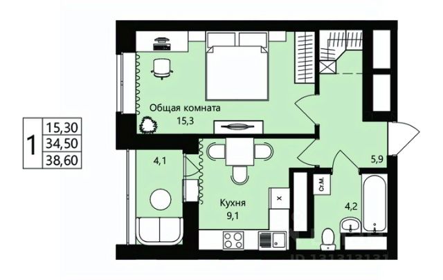 • ✅ Минимальная площадь: 34,5 м²