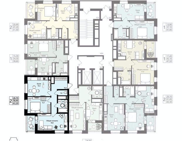 • ✅ Минимальная площадь: 33,9 м²