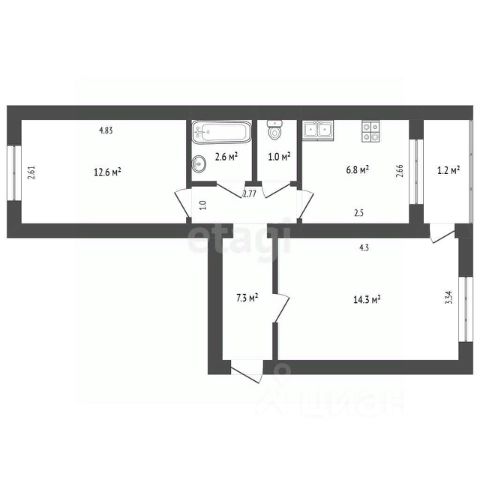 • ✅ Объект наибольшей площади: 49,3 м²