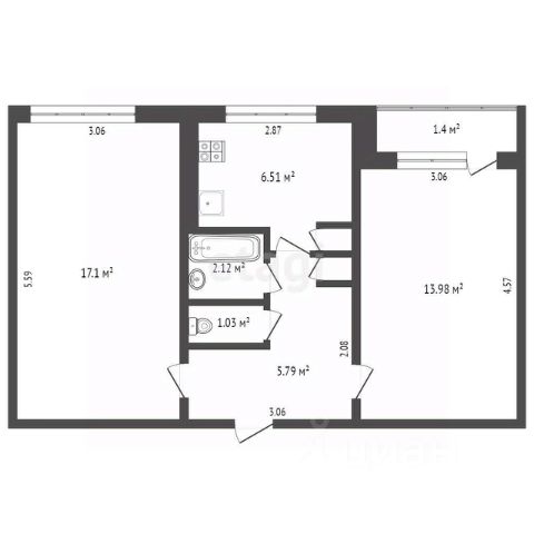 • ✅ Минимальная площадь: 34,4 м²