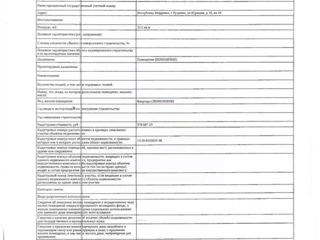 Данные получены с сайта ГИС Торги. Жилое помещение (квартира) общей площадью 64,2 кв.м., кад. 13:25:0103020:1608, находящееся в пределах объекта недвижимости с кад. 13:25:0103020:110, принадлежащее должнику Репиной О.А. Зарегистрировано два гражданина. Сведениями о фактическом состоянии объекта недвижимости, о задолженности по коммунальным платежам и взносам на капитальный ремонт, организатор торгов не располагает. Техническая документация на объект недвижимости и его фотографии отсутствуют у организатора торгов.