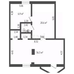 Помещение площадью 55,5 м² разделено на два отдела. Полностью обустроено: проведены свет, газ и отопление, есть санузел с раковиной и подсобное помещение с газовым котлом.