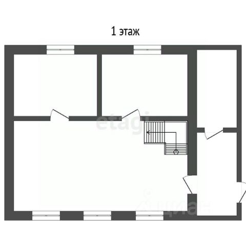 Первый этаж: большая кухня-гостиная 20 м², спальня, котельная, санузел (совмещенный).