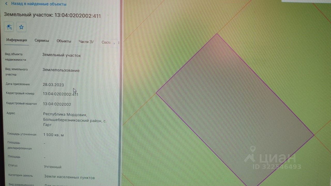 Заключение договора аренды земельного участка общей площадью 1500 кв.м. с кадастровым номером 13:04:0202002:411. Республика Мордовия, Большеберезниковский район, с. Гарт. Разрешенное использование: Для индивидуального жилищного строительства. Категория земель земли населенных пунктов, сроком 20 лет. Начальная цена величины годовой арендной платы за земельный участок согласно отчету об оценке рыночной стоимости 25/09/529-н от 29.09.2025 г. 21 456 (двадцать одна тысяча четыреста пятьдесят шесть) рублей 00 копеек. Размер задатка для участия в аукционе 5 % от начальной цены предмета аукциона, составляет 1 072 (одна тысяча семьдесят два) рубля 80 копеек. Шаг аукциона 3% от начальной цены предмета аукциона, составляет 643 (шестьсот сорок три) рубля 68 копеек;