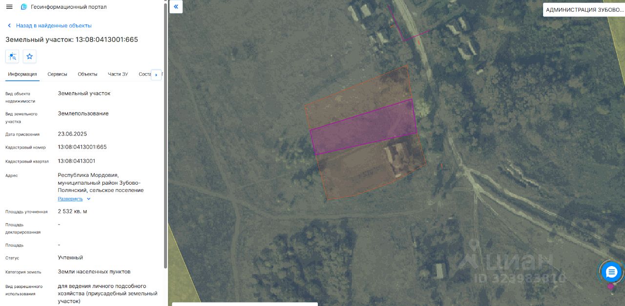 Земельный участок из земель населенных пунктов, являющийся не разграниченной государственной собственностью, площадью 2532,0 кв.м., с кадастровым номером 13:08:0413001:665, расположенный по адресу: Республика Мордовия, муниципальный район Зубово-Полянский, сельское поселение Дубительское, село Журавкино, улица Кооперативная, земельный участок 54, с видом разрешенного использования: "Для ведения личного подсобного хозяйства (приусадебный земельный участок).