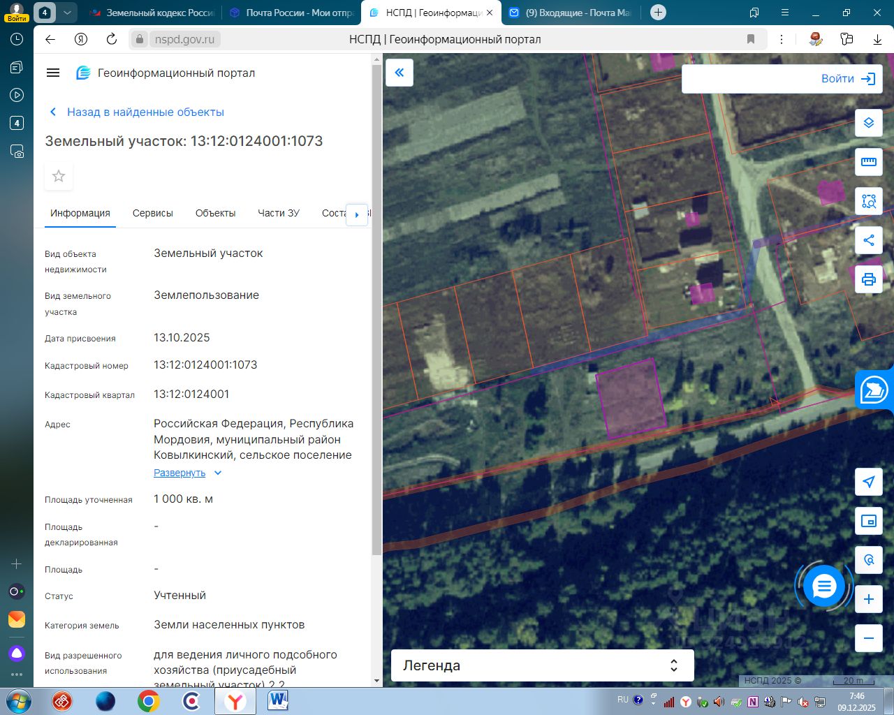 Российская Федерация, Республика Мордовия, муниципальный район Ковылкинский, сельское поселение Примокшанское, поселок Примокшанский, улица Парковая, земельный участок 10А, с кадастровым номером 13:12:0124001:1073, категория земель: земли населенных пунктов, вид разрешенного использования: для ведения личного подсобного хозяйства (приусадебный земельный участок) 2.2, площадью 1 000,0 кв.м.