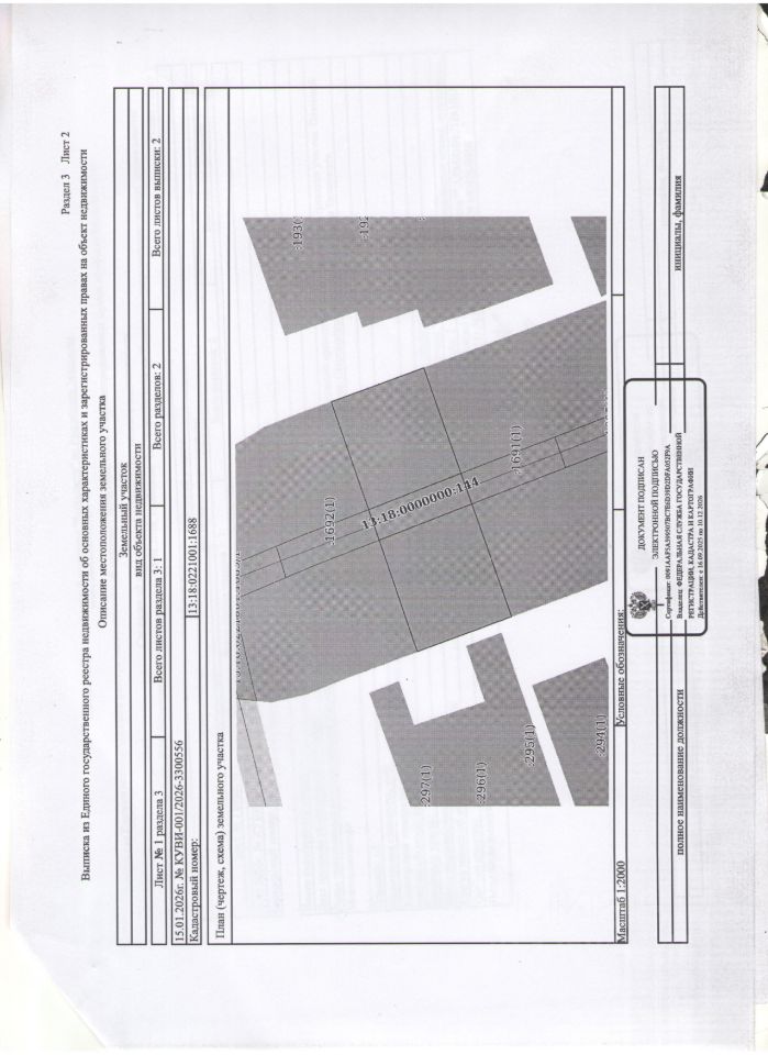Лот 3 Местоположение земельного участка Республика Мордовия, Старошайговский район, с.Старая Теризморга Площадь и кадастровый номер земельного участка 10 000 кв.м., К 13:18:0221001:1688 Границы земельного участка установлены в соответствии с требованиями действующего законодательства. Категория земель земли населенных пунктов Вид разрешенного использования Приусадебный участок личного подсобного хозяйства Срок аренды 10 лет