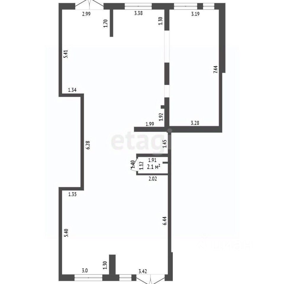 Сквозной проход помещения имеет 2 входа/выхода.