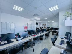 Офисное помещение площадью 194,3 кв. м в престижном деловом центре "ОНЕГИН" предлагает готовое решение для эффективной работы. Объект расположен на втором этаже современного 11-этажного здания в центре города, что обеспечивает отличную транспортную доступность и репрезентативный адрес. Ключевым преимуществом является отдельный вход с улицы Б. Хмельницкого, обеспечивающий независимость и прямой доступ с парковки. Помещение имеет грамотную зонированную планировку: просторный рабочий зал формата open space, кабинет руководителя, две переговорные комнаты для совещаний, гардеробную и два санузла. Выполнен качественный современный ремонт с практичными материалами — подвесные потолки "Армстронг", напольное покрытие из керамогранита, светопрозрачные конструкции из алюминиевого профиля. Офис полностью оснащен для комфортной работы: установлены два кондиционера, проведены интернет-коммуникации, смонтированы системы охранной и пожарной сигнализации. Состояние объекта позволяет начать работу сразу после заключения сделки, без дополнительных вложений в ремонт. Это рациональный выбор для компании, ценящей функциональность, представительность и центральное расположение.