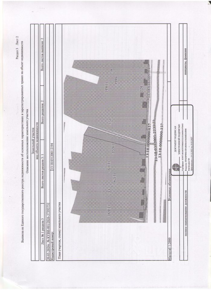 Местоположение земельного участка Республика Мордовия, Старошайговский район, с.Мельцаны, ул.Крестьянская. Площадь и кадастровый номер земельного участка 2500 кв.м., К 13:18:0312001:2194 Границы земельного участка установлены в соответствии с требованиями действующего законодательства. Категория земель земли населенных пунктов Вид разрешенного использования Для индивидуального жилищного строительства Срок аренды 20 лет