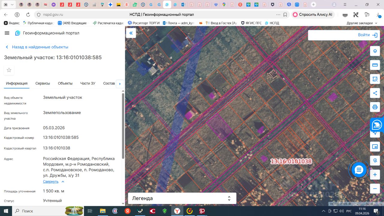 Земельный участок с кадастровым номером 13:16:0101038:585, площадью 1500 кв.м., находящегося по адресу: Республика Мордовия, Ромодановский муниципальный район, Ромодановское сельское поселение, поселок РОМОДАНОВО, улица Дружбы, земельный участок 31, с видом разрешенного использования: блокированная жилая застройка