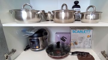 * Холодильник, варочная панель, мультиварка, электрический чайник, микроволновка, миксер, блендер.