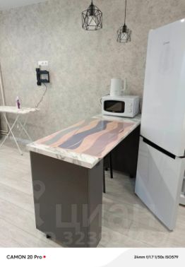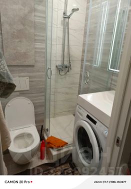 В студии выполнен качественный евроремонт, что позволяет вам наслаждаться современным и стильным интерьером. В комнате есть вся необходимая мебель, а также техника: холодильник, телевизор и стиральная машина. Ванная комната оборудована душевой кабиной, что делает её использование комфортным и удобным.
