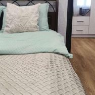 Квартира оборудована всем необходимым для комфортного проживания: двуспальная кровать, телевизор, кухня с электрической плитой на 4 конфорки, микроволновой печью, холодильником, электрическим чайником; в ванной комнате есть фен, стиральная машина, а так же утюг, гладильная доска и сушилка для одежды.