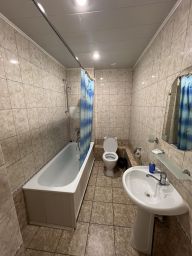 Просторный и уютный номер, 2 раздельные 1,5 спальные кровати, диван-кровать, ванна, туалет, раковина, сан.узел совмещенный. Мебелирование: кровати, прикроватные тумбочки, шкаф, стеллаж, стол, журнальный столик, телевизор, холодильник, Wi-Fi.