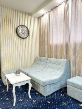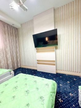 Квартира оборудована всем необходимым для комфортного проживания: двуспальная и односпальная кровати, диван, кухонная зона, телевизор, игровая приставка, собственная ванная комната и туалет.