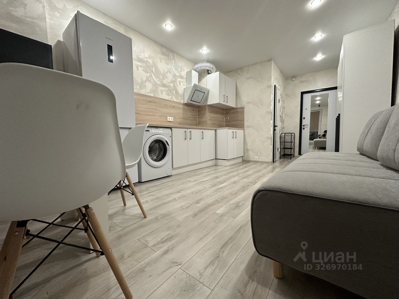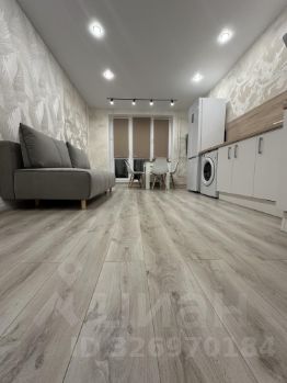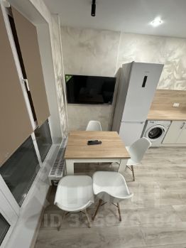 В квартире выполнен евроремонт, поэтому все выглядит стильно и современно. Пространство студии грамотно организовано: есть мебель как на кухне, так и в жилой зоне. Ванная комната оснащена душевой кабиной. Из техники вы найдете все необходимое: холодильник, телевизор и стиральную машину. Окна выходят на улицу, что обеспечивает хорошее естественное освещение.