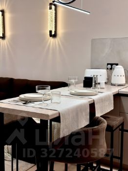 Квартира выполнена в дизайнерском стиле, что создаёт уютную и современную атмосферу. В комнате есть вся необходимая мебель, а на кухне установлен полный комплект элитной техники: кондиционер, холодильник, посудомоечная машина, телевизор, стиральная машина итд . Санузел совмещённый, оснащён ванной. Окна квартиры в пол, выходят на улицу, обеспечивая хороший естественный свет.