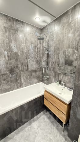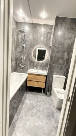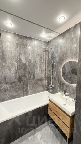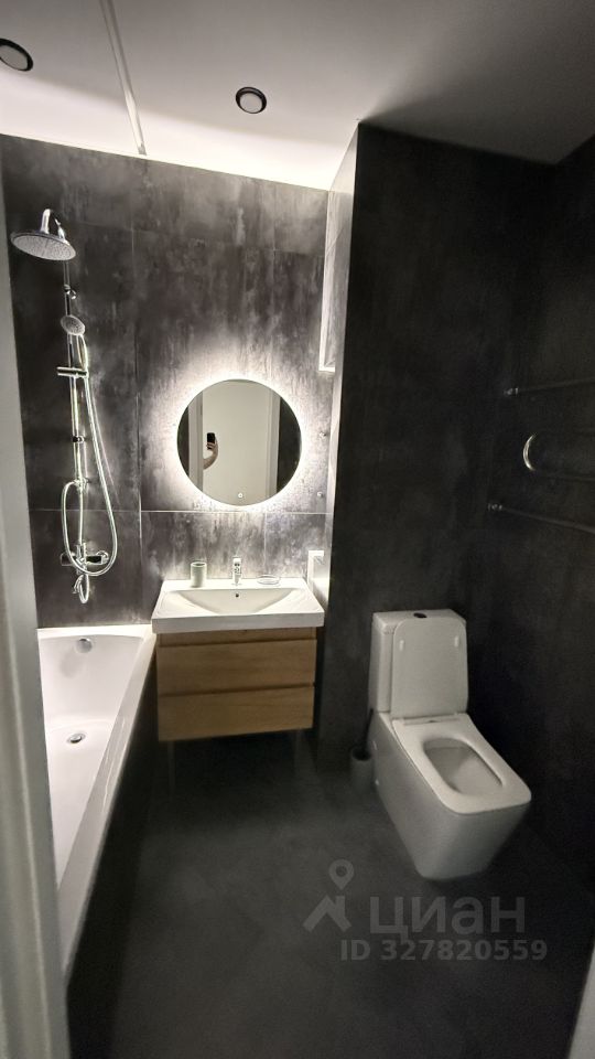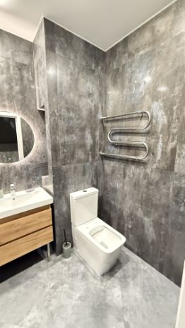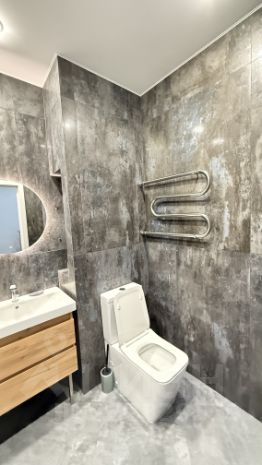 Санузел совмещённый, оформлен в современном стиле с качественной отделкой.