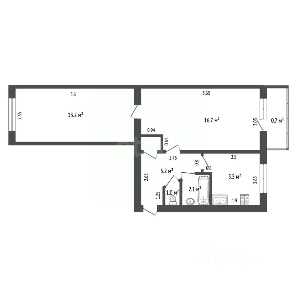 Сдаётся на длительный срок 2-комнатная квартира площадью 47 кв. м.