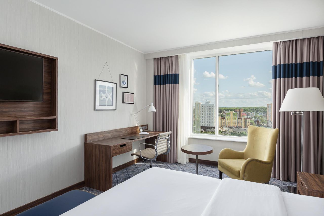 Просторный элегантный номер, выполненный в стиле современной классики, общей площадью 27 м2 с прекрасным видом на главные достопримечательности города Парк культуры и отдыха им. А.С. Пушкина
