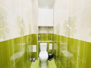 Санузел раздельный, оформлен в светлых тонах с яркими акцентами. Лоджия застеклена и отделана деревом, что добавляет уюта и тепла.
