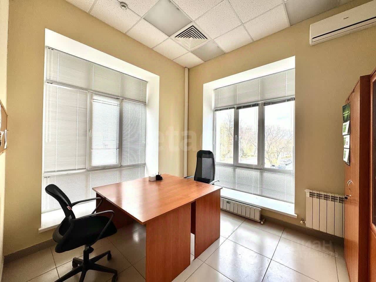 Помещение с косметическим ремонтом,офисной мебелью, всеми необходимыми коммуникациями - электроснабжение, водоснабжение, канализация, отопление. Система кондиционирования в каждом кабинете. Два санузла, комната приема пищи. Планировка кабинетная. Электричество - 15 кВт. Имеется пожарная и охранная системы безопасности. Своя котельная,что позволяет значительно экономить на коммунальных платежах. На территории есть большая стоянка для легкового и грузового транспорта. Над главным входом имеется место для установки рекламной вывески.