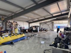 Пристройка к дому в виде гаража-ангара идеально подходит для ведения бизнеса, будь то ремонт, аренда или даже производство. Этот объект был изначально задуман как база отдыха с прокатом снегоходов.