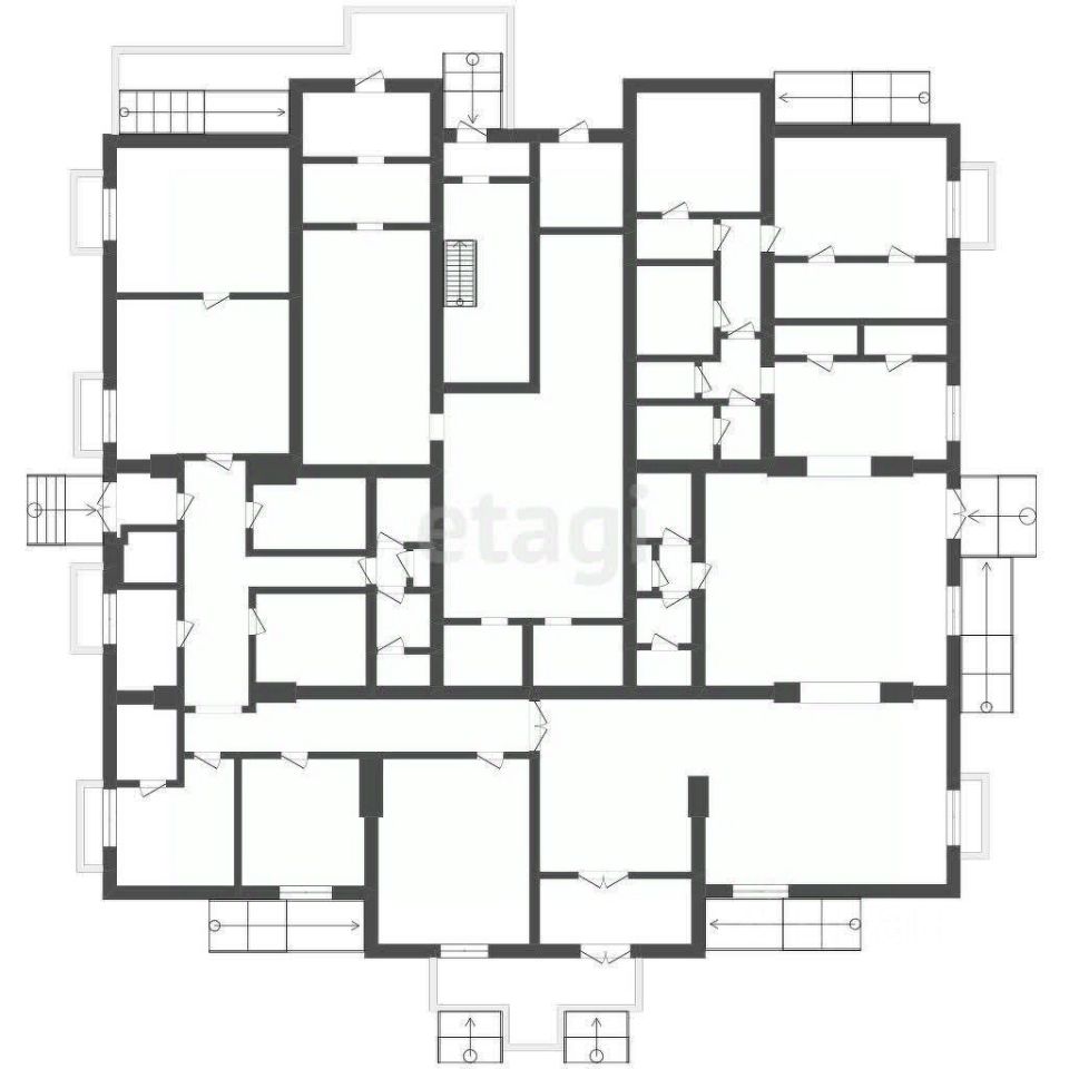 Помещение на первом этаже со свободной планировкой в многоквартирном жилом доме.