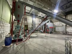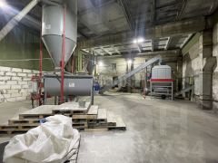 - Цех хранения сырья, в нем же установлено оборудование сушки и гранулирования мощностью от 1 до 3,5 тонн в час, в зависимости от размера гранул.
