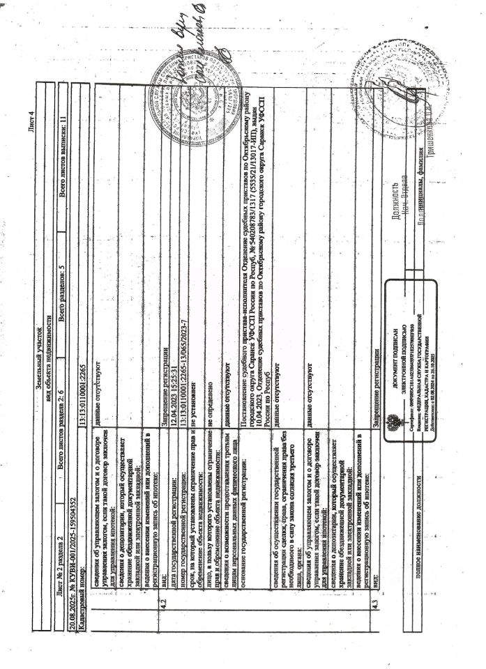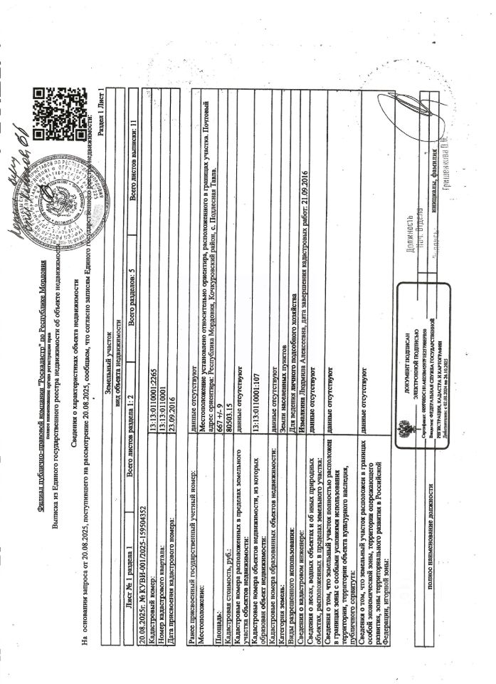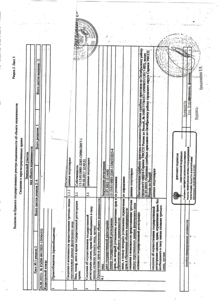 Земельный участок площадью 667+/-9 кв.м., кад. 13:13:0110001:2265, категория земель: земли населённых пунктов, виды разрешённого использования: для ведения личного подсобного хозяйства, принадлежащий должнику Полбичеву Н.П. Сведениями о фактическом состоянии объекта недвижимости организатор торгов не располагает. Техническая документация на объект недвижимости и его фотографии отсутствуют у организатора торгов.